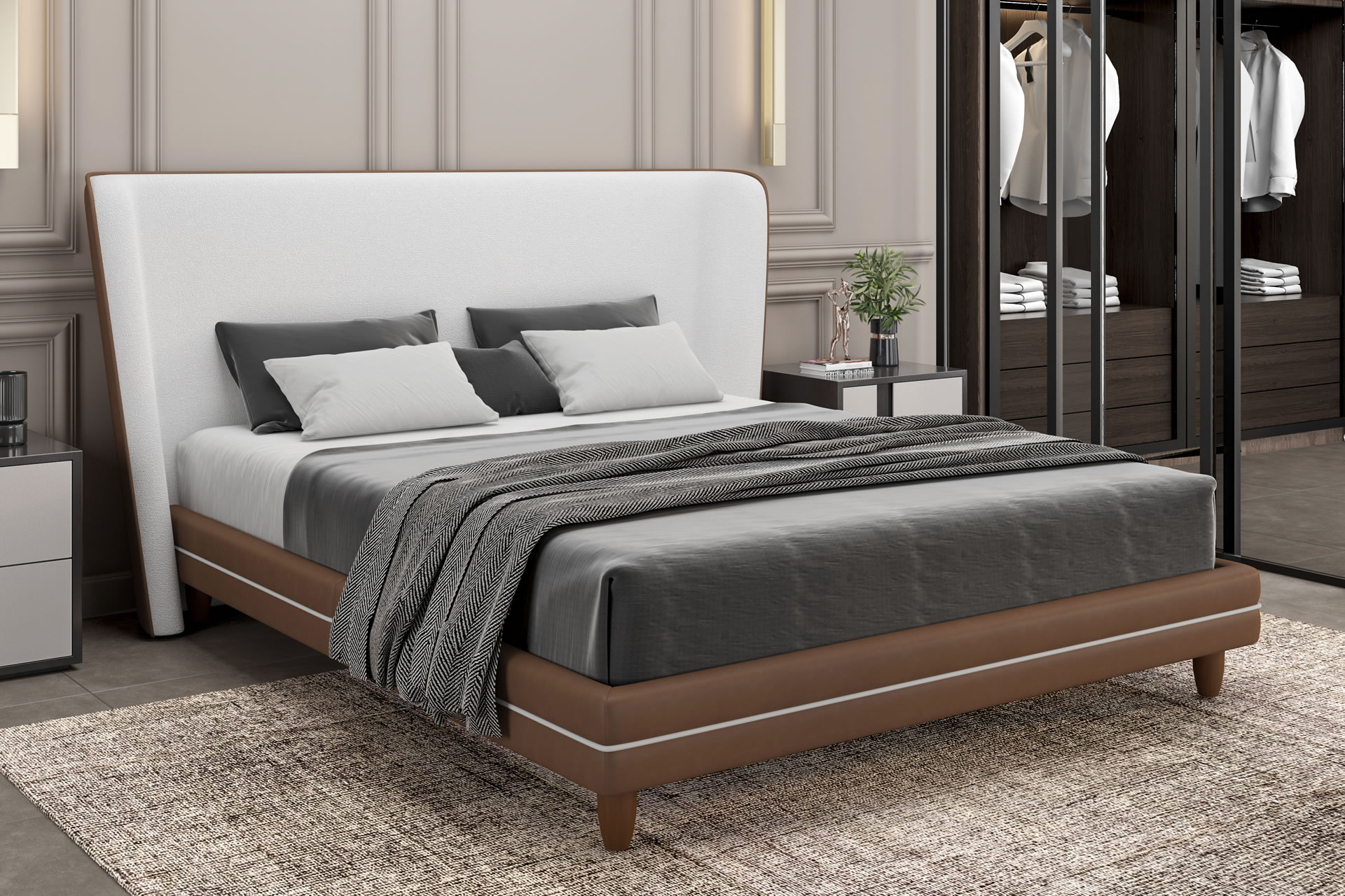 - Acabamentos Internos: Pés com 13 cm. Opção em alumínio preto ou em madeira.